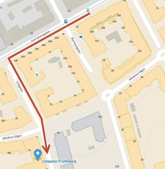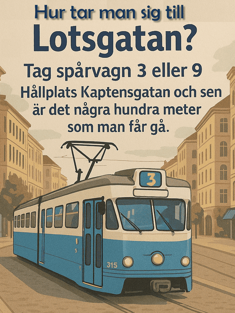 Du tar dig enklast hit med spårvagn. Tag 3:an eller 9:an och gå av vid kaptensgatan. Därefter går du ca 200 meter till en svart grind in till port. Ring på porttelefonen så kommer vi och öppnar. Kafévärdarna tar emot dig och hjälper dig tillrätta.